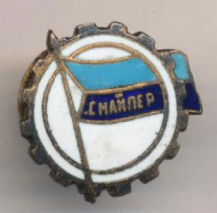 Вторая половина тридцатых годов. Эмблема ДСО профсоюза рабочих промышленности точного машиностроения «Снайпер» (auction.conros.ru)
