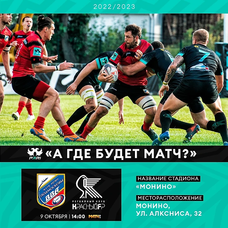 9 октября, в воскресенье, в 18.00 крск. начнётся матч PARI Чемпионата России по регби «ВВА-Подмосковье» - «Красный Яр».