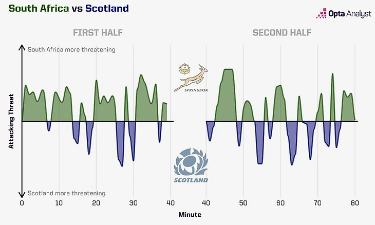Четыре своих коридора и три схватки были проиграны Шотландией, что свело на нет импульс в атаке. Шотландцы не проигрывали больше стандартных положений в матчах чемпионата мира по регби с 1991 года (по восемь против Ирландии и Новой Зеландии).