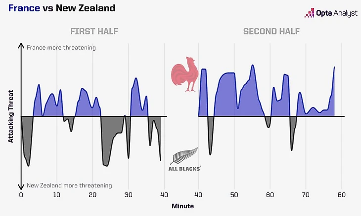 Однако за первым ударом Новой Зеландии не последовало продолжение. Несмотря на то, что Телеа проделал аналогичный трюк в начале второго тайма, чтобы снова вывести команду Яна Фостера вперед, Франция доминировала в последние 25 минут.
