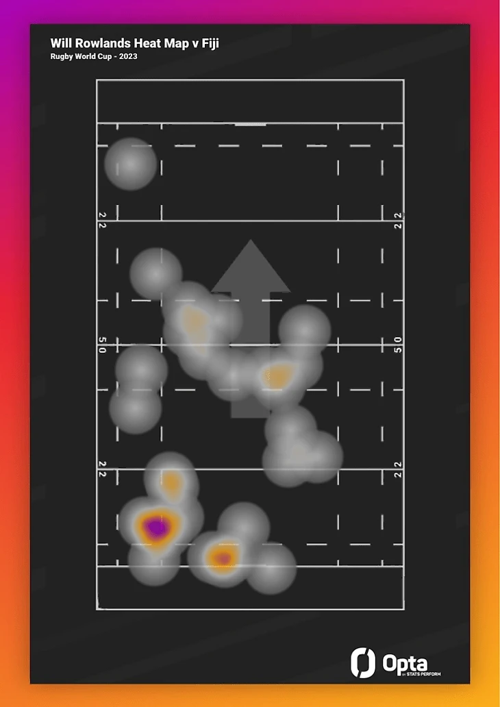 Уилл Роулендс сделал 27 захватов. Больше за одну игру за всю историю турнира сделали только три игрока (Тьерри Дюзатуа, Таулупе Фалетау, Джонни Грей – все 28). Все эти усилия могли стать бесполезными, когда Семи Радрадра на последних секундах должен был положить попытку, но не смог чисто подобрать мяч, и Уэльс удержался.