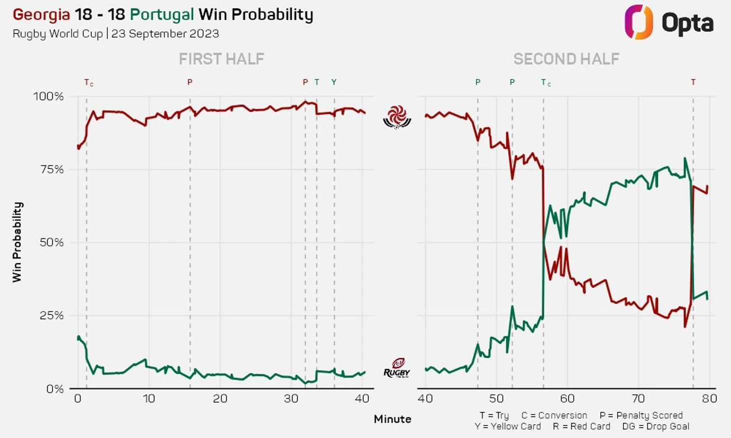 Когда пыль уляжется, Португалия, вероятно, окажется более счастливой стороной. Хотя они не смогли удержать победу, их борьба и возвращение со счета 0-13 до лидерства 18-13 показала большую стойкость, поскольку португальцы впервые избежали поражения в матче Кубка мира.