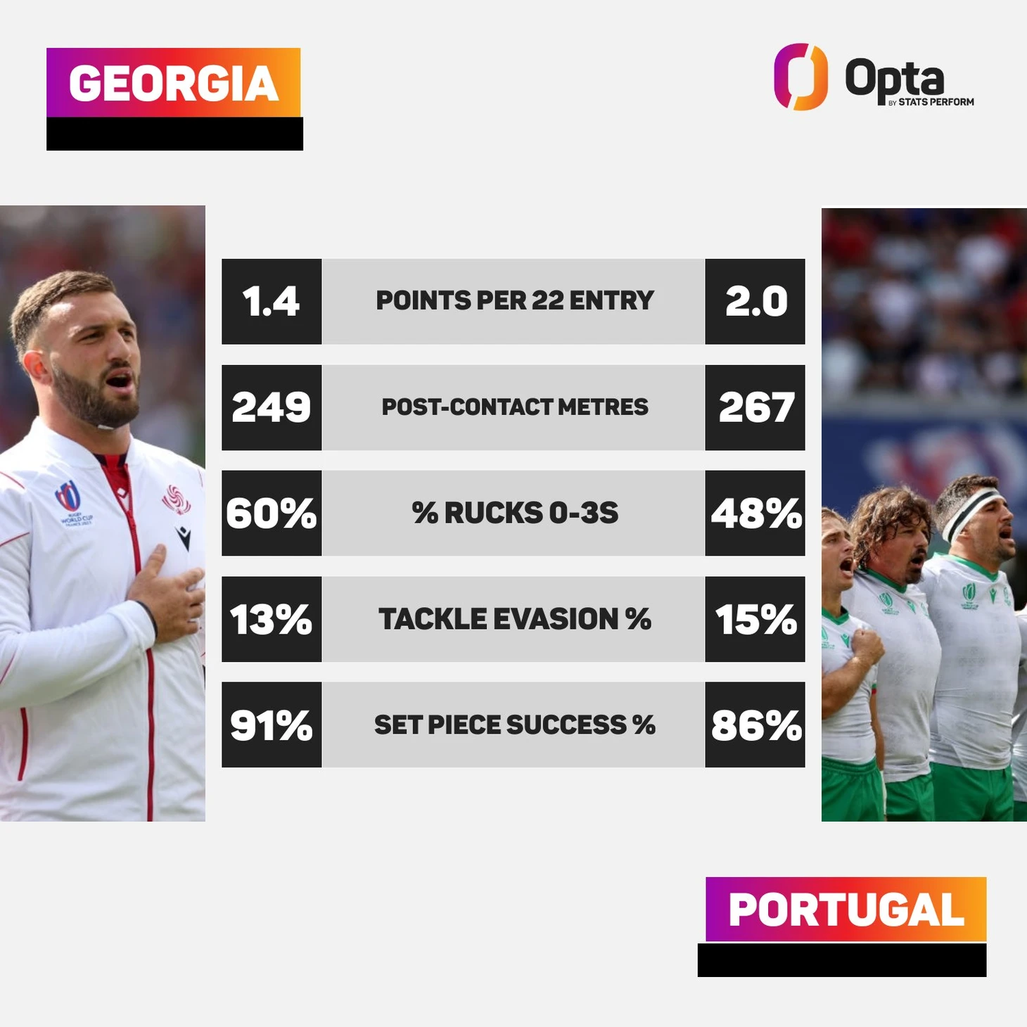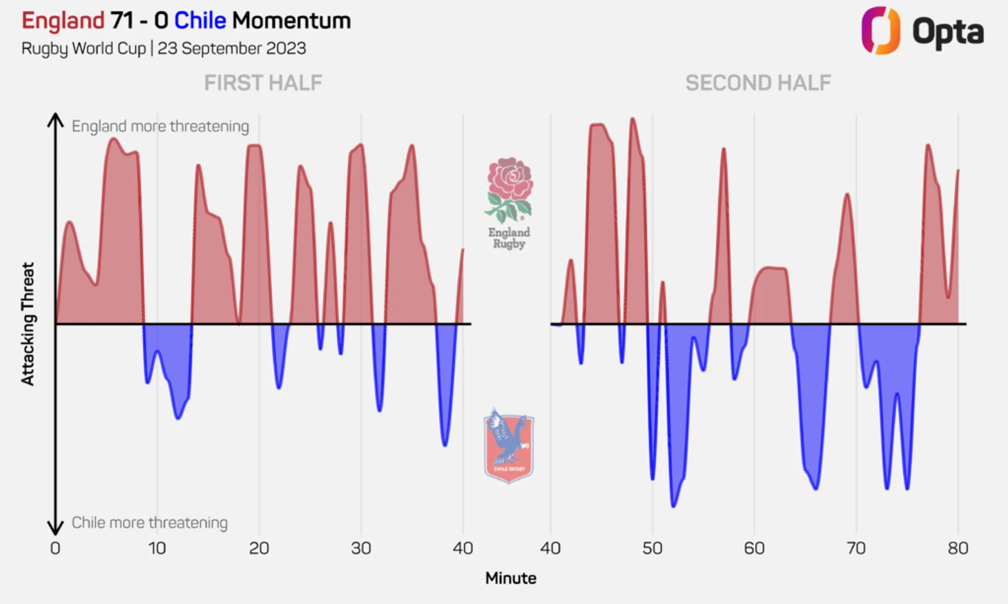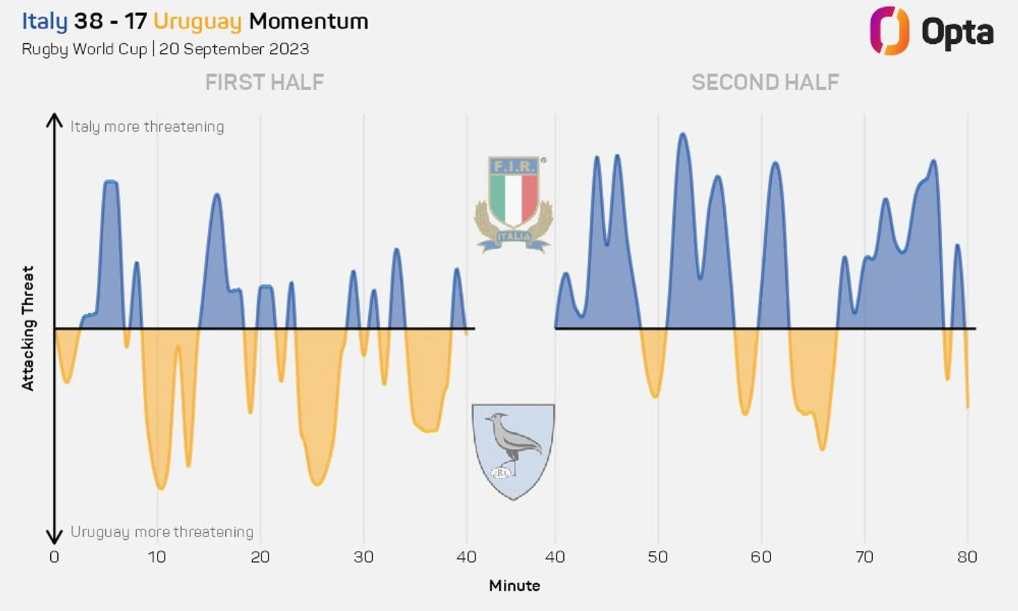 Погода сыграла свою роль: обе команды набрали двузначные цифры по ошибкам в обработке мяча и допустили более 15 потерь каждая. Однако Аргентина доставила больше проблем с мячом в руках, обыграв в общей сложности 35 защитников, а стандартные положения дали им надежную платформу для атаки, поскольку они стали первой командой, зафиксировавшей 100% результативность стандартных положений в игре на таком уровне в этом году.