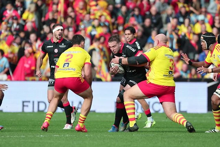 Тулузская машина, похоже, набирает обороты. Французский гранд, традиционно больше всего страдающий от отсутствия сборников, с возвращением в строй игроков основы начал выходить на проектную мощность. 4 попытки в первом тайме. Все по-своему красивые, но наиболее солидно выглядел занос Ричи Арнольда – атака «Тулузы», как катком прошлась до зачётки. Второй тайм начался с накрытия удара «Перпиньяна» и ещё 5 очков хозяев. Отличился Мелвин Жемине, который, по слухам, собрался переезжать в «Тулон». А дальше «Тулуза» видимо перешла в щадящий режим, умудрившись пропустить аж 4 попытки от аутсайдера чемпионата. Даже выход Антуана Дюпона не особо помог. Кстати, в середине второго тайма Аливерети Дугивалу решил проверить, как капитан французской сборной восстановился от травмы, зарядив тому локтем в голову. Судьи такой тест оценили на жёлтую карточку. Была ещё попытка от Питы Мауваки, но второй тайм явно был не в пользу фаворита.
