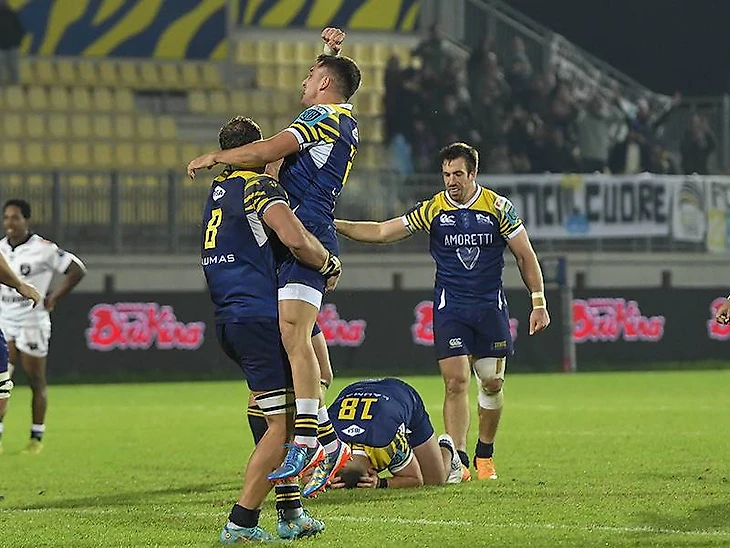 Другой лидер первенства принимал одного из фаворитов. Гости первыми занесли – на 9-й минуте постарался Бен Тапуаи. Однако, бьющий «Бордо» и сборной Франции Матьё Жалибер не попал реализацию. Хозяева прагматично били со штрафных – Джо Симмондс попал к 14-й минуте дважды. А через 7 минут карточку жёлтого цвета перед собой увидел Максим Ламот. И «По» поспешил воспользоваться численным большинством. Попытка Юри Деломмеля вышла на загляденье – скорость, игра в пас, своевременная поддержка – всё по делу. Симмоднс забил конверсию. До конца первого тайма ещё хотел попасть дроп, но мимо. 13:5 к перерыву. Во втором тайме гости приняли вызов в перестрелке со штрафных – дважды был точен 9-й номер сборной Франции Максим Люку. Они пытались атаковать и прорывать линию, но занесли хозяева. На 54-й минуте аргентинец Факундо Гигена затолкал мяч в зачётку. Симмондс точен в конверсии. А дальше – хуже некуда для «Бордо» - жёлтая для Кейна Дугласа уже через 2 минуты. Счёт и время, вроде бы, позволяли надеяться на интригу, но регбисты «По» не дали соперникам подобраться к себе. Пиренейцы остаются во главе турнирной таблицы.