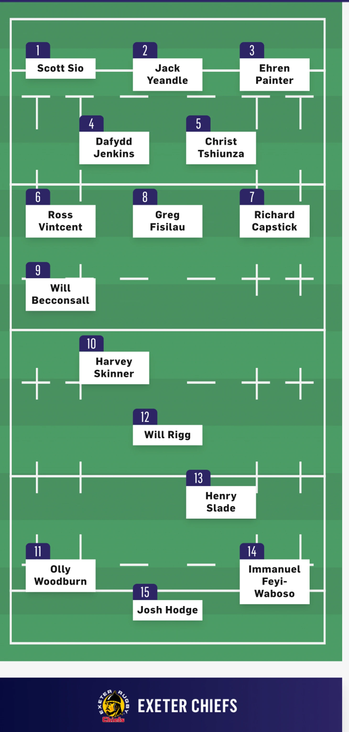 Эта ошибка в схватке негативно повлияла на игру Эксетера в следующие пару минут. Потому что привела к попытке хозяев. Люк Коуэн-Дики (2 номер) вбросил мяч из аута, затем получил его обратно и был приземлен с мячом своими партнерами в зачетку Эксетера Чифс. Форд вновь был точен при пробитии реализации.