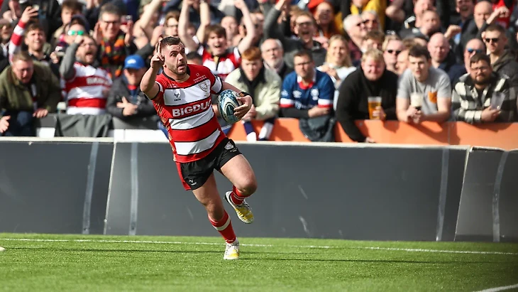 Регбисты Глостера даже больше владели мячом в концовке матча, только вот не получалось и близко подобраться к зачетному полю соперника. Да еще умудрились пропустить попытку от ван Ренсбурга (13 номер), к которой еще добавилась реализация от МакГинти (10 номер).