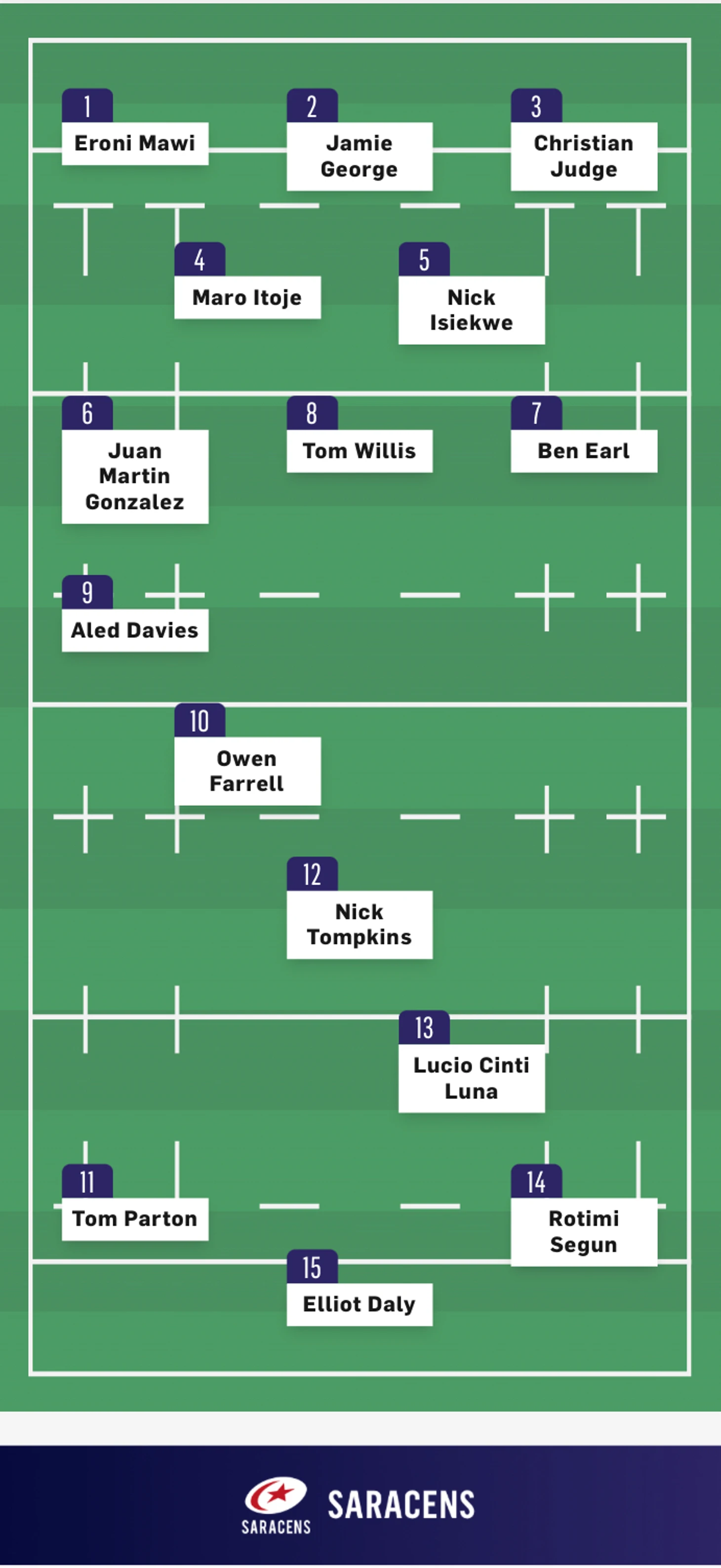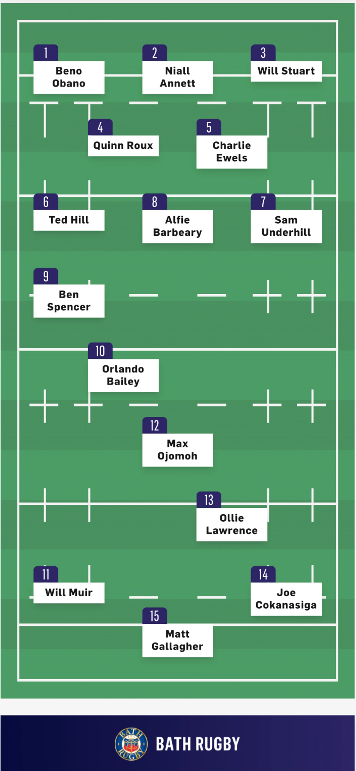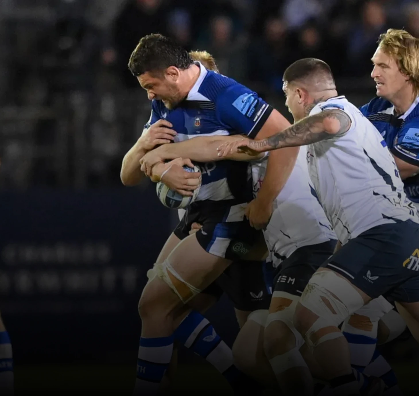 Оуэн Фаррелл (10 номер) начал матч ударом с центра поля. Игроки в сине-белых регбийках поймали мяч и быстро вернули его Фарреллу. Фаррелл решил вернуть его на половину поля Бата, но его удар был заблокирован Чарли Юэлсом (5 номер) и был шанс провести атаку на попытку, только вот партнеры Юэлса сыграли вперед и атака была сорвана.
