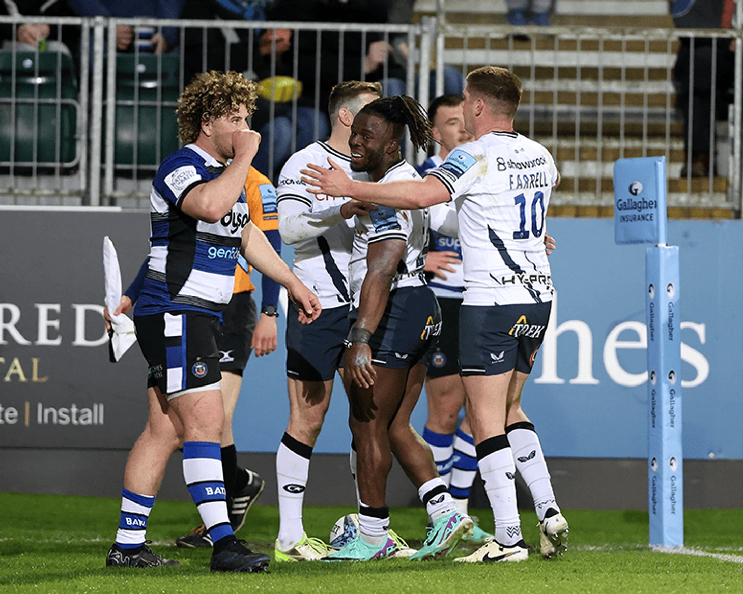 Оставалось играть около 20 минут, а весь запал у хозяев как-то визуально закончился. А гости визуально и не хотели унижать хозяев разгромом. За последние десять минут матча регбисты Сэйл Шаркс умудрились занести все-таки две попытки, наиграв на бонус атаки. Том Робак (14 номер) и Роб дю При (13 номер) занесли так, чтобы Джорджу Форду (10 номер) было несложно забивать реализации.