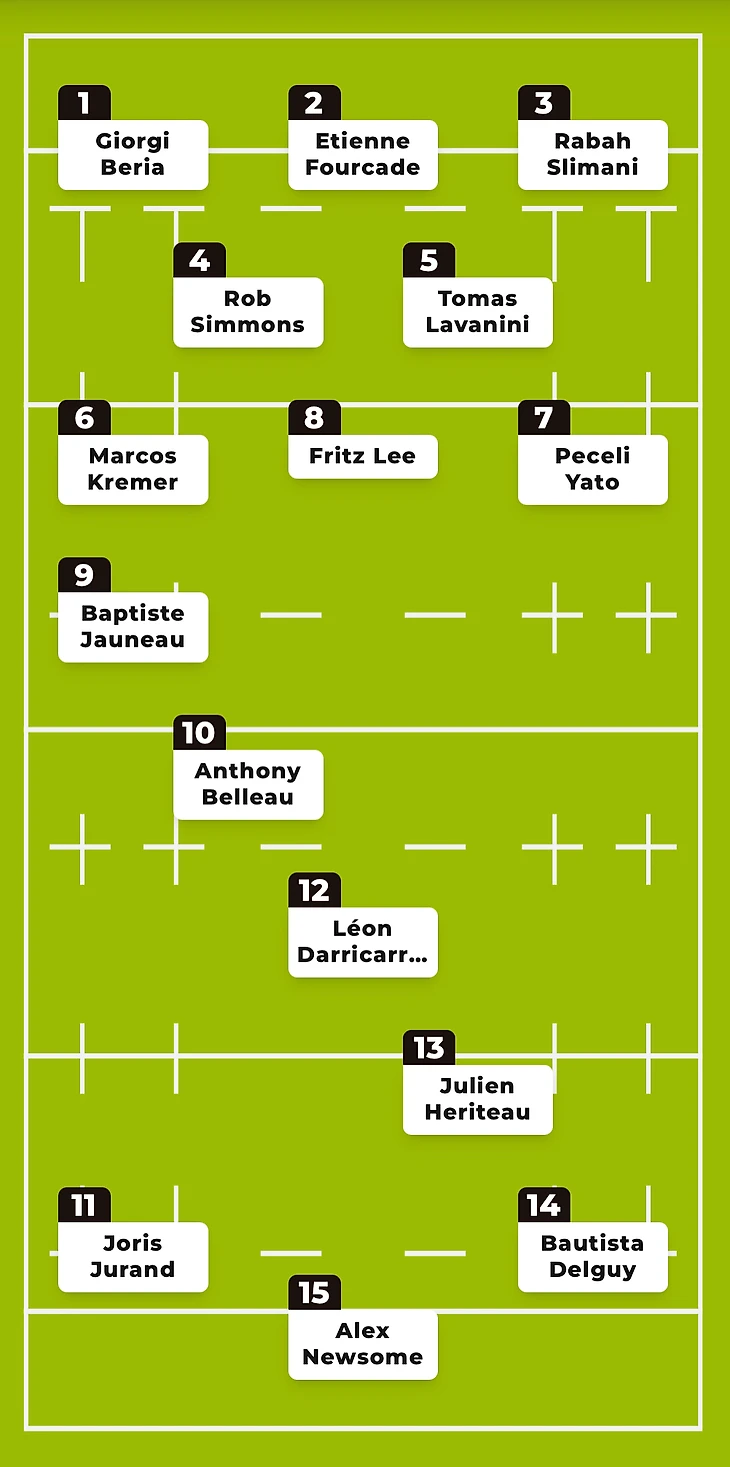 Пять минут команды поиграли в усеченных составах, показав зрителям много борьбы и захватов. А затем Клермон пропустил попытку от Маказоле Мапимпи (13 номер). Сначала Эбен Этзебет (4 номер) выиграл верховой мяч. Пробежав с двумя игроками и мячом на себе, он передал мяч партнеру. После этого пара передач и мяч оказывается у Лукхеньо Ама (13 номер). Он в свою очередь на свободном пространстве убегает к 22-х метровой зоне Клермона, где отдает передачу Мапимпи и тот сокращает разницу в счете до одного балла. А Сийя Масуку (10 номер), забив реализацию выводит свою команду впереди 32-31.