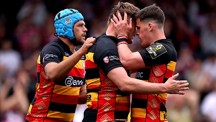 Наконец работа форвардов «Бенеттона» дала свои плоды. Штрафной перед воротами – Томас Алборноз точен. Под плотный захват попадает английский ветеран Джонни Мэй. Хастингс ещё раз пробует попасть с подставки – теперь удачно. Гости вновь хорошо играют в схватке и получают удар для Алборноза. Аргентинец не промахивается. 8:6 становится счёт. Хастингс исполняет 50:22. Следует затяжная атака «Глостера» на преимуществе, но завершить её заносом сразу не выходит. Возврат к месту нарушения, аут и попытка Себастьяна Блэйка после мола. Конверсия прилагается.