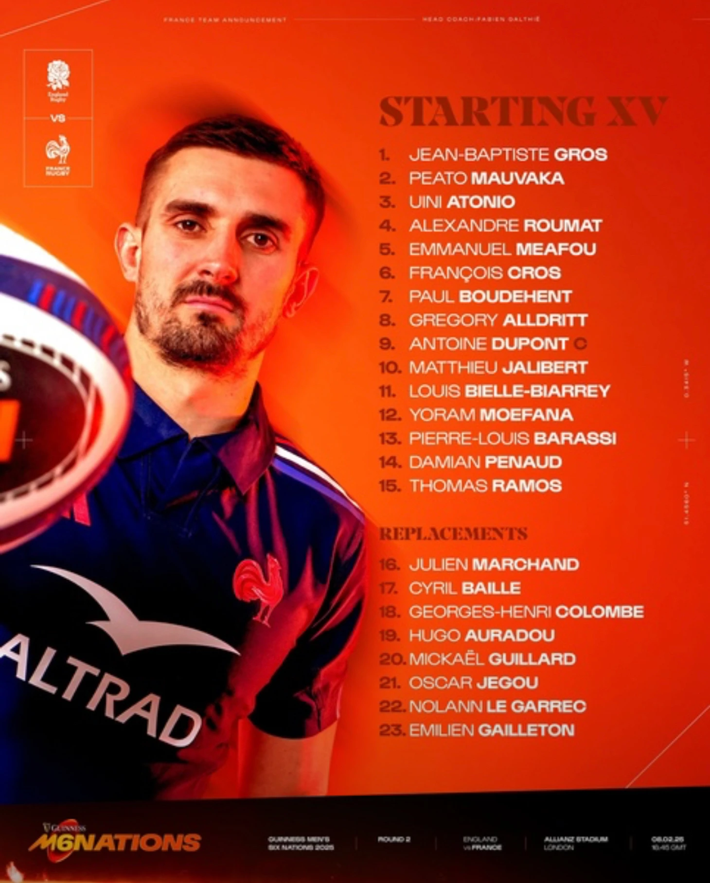 Капитаны команд Маро Итоже (4 номер) и Антуан Дюпон (9 номер) были решительно настроены на этот матч. Капитан англичан хотел бы прервать неудачную серию против Франции, которая насчитывает 3 поражения подряд в матчах между ними. Капитан французской сборной в свою очередь хотел продлить эту серию и повторить серию из четырех побед подряд над англичанами, которая была с 1975 по 1978 года.