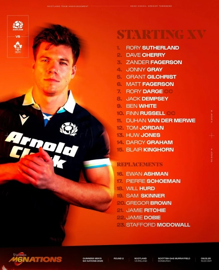 Замены, которые провели шотландцы сильно изменили расстановку игроков на поле. Джэйми Добби (22 номер), заменивший Грэма (14 номер), загнал его место на фланге, хотя номинально он скрам-хав и должен был бы заменить Бэна Уайта (9 номер) на 55-60 минуте матча. Стаффорд МакДауэлл (23 номер) вышел вместо Финна Расселла (10 номер), занял на поле позицию Том Джордана (13 номер). Том Джордан (12 номер) перешел на позицию Блэйра Кингхорна (15 номер), который в свою очередь стал играть на позиции ушедшего Финна Расселла (10 номер). Но так играли недолго. Том Джордан (12 номер) перешел на позицию флай-хава, а Блэйр Кингхорн (15 номер) вернулся на свою позицию фуллбэка.