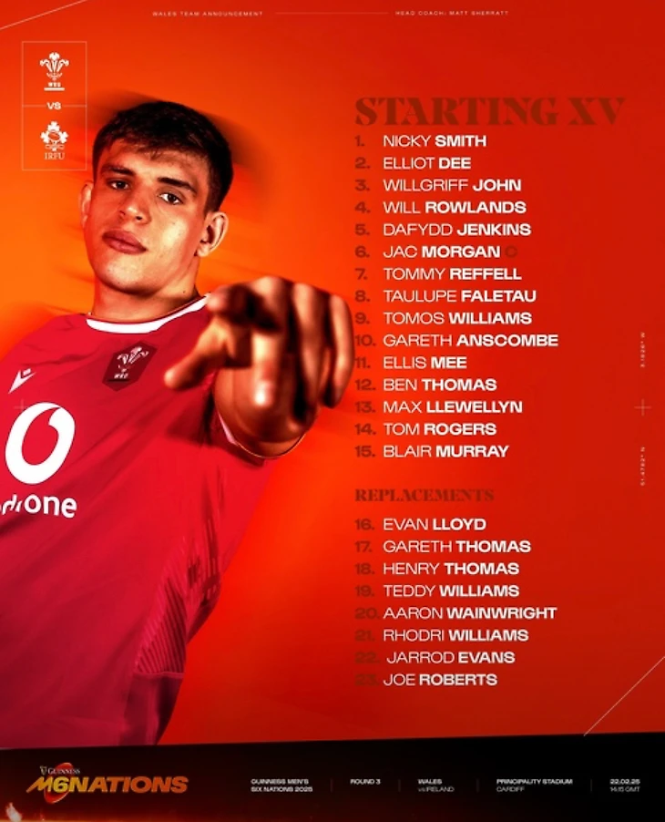Если посмотреть внимательно на составы, то можно увидеть, что в командах есть дебютанты. У валлийцев это Эллис Ми (11 номер), а у ирландцев со скамейки запасных выйдет Джэк Бойл (17 номер).
