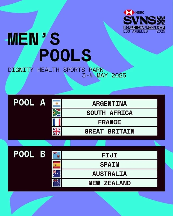 В мужском турнире: в группе А лидеры лиги SVNS Аргентина встретятся с сильными соперниками: Южной Африкой, олимпийскими чемпионами Францией и Великобританией.