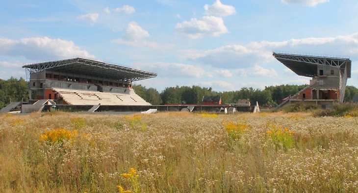 Перед вами самый неординарный регбийный стадион России — возможно, будущая домашняя арена монинского клуба "ВВА-Подмосковье". И да, он недостроен.