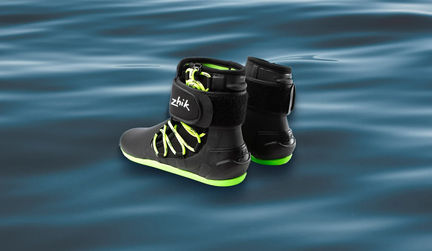 На швертботе удобнее всего ходить в высоких гидроботинках, чтобы была поддержка голеностопа, но даже короткие спасут от скольжения. В случае, если не хочется покупать дорогую специализированную обувь, можно посмотреть гидротапочки для серфинга или прибрежного дайвинга.