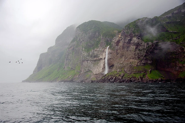 Илья Муромец — Фантастической красоты высоченный водопад на восточном побережье острова Итуруп. Видно его, конечно, только с воды. Высота Ильи Муромца — почти 150 метров.