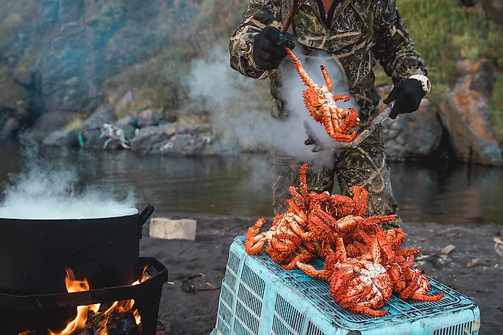 Колючий — Один из девяти видов крабов, которые водятся в местных водах. В отличие от Камчатского, которого тут тоже полно, обладает меньшим размером фаланг и туловища — оно как раз и заключает в себе все самое вкусное и ценное.
