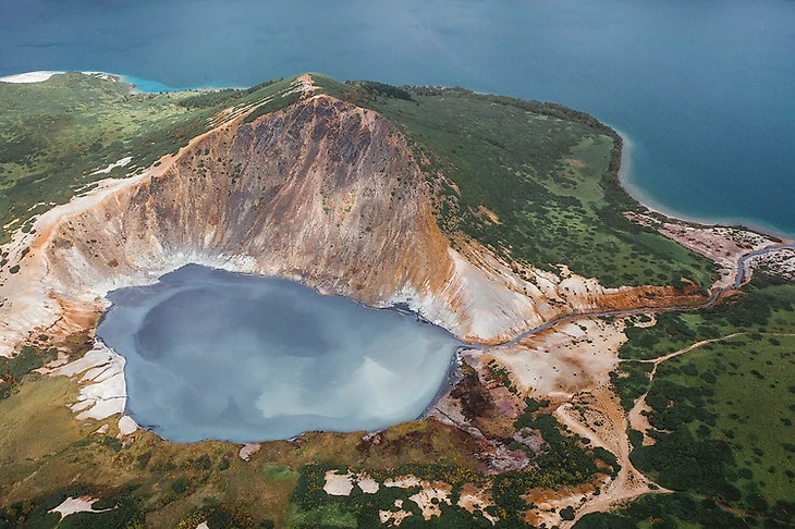 Курильские острова, во-первых, вулканического происхождения, а во-вторых, почти полностью из этих самых вулканов и состоят: только надводных там насчитывается 68, из которых 37 действующие, еще больше 100 вулканов находятся под водой.