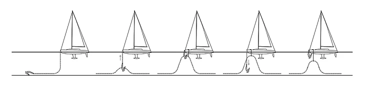 4) Ослабляем якорную цепь, даем и цепи, и якорю лечь на дно.