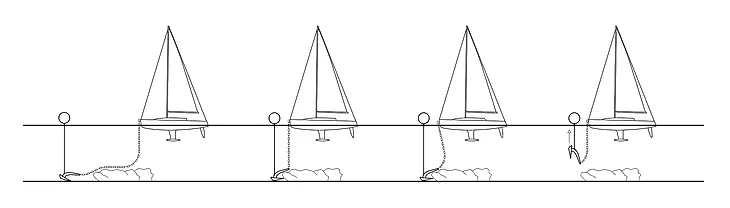 Тем не менее, это может сработать, если якорь зацепился за веревку или цепь, растянутую на дне. Тогда он действительно сможет встать в вертикальное положение, при котором кольцо из цепи упадет в нужное место.
