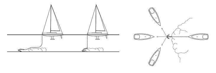 Без томбуя сделать это немного сложнее. В этом случае бесполезно продолжать тянуть якорь в ту же сторону — нам нужно постараться вытащить его в противоположном направлении за якорную цепь.