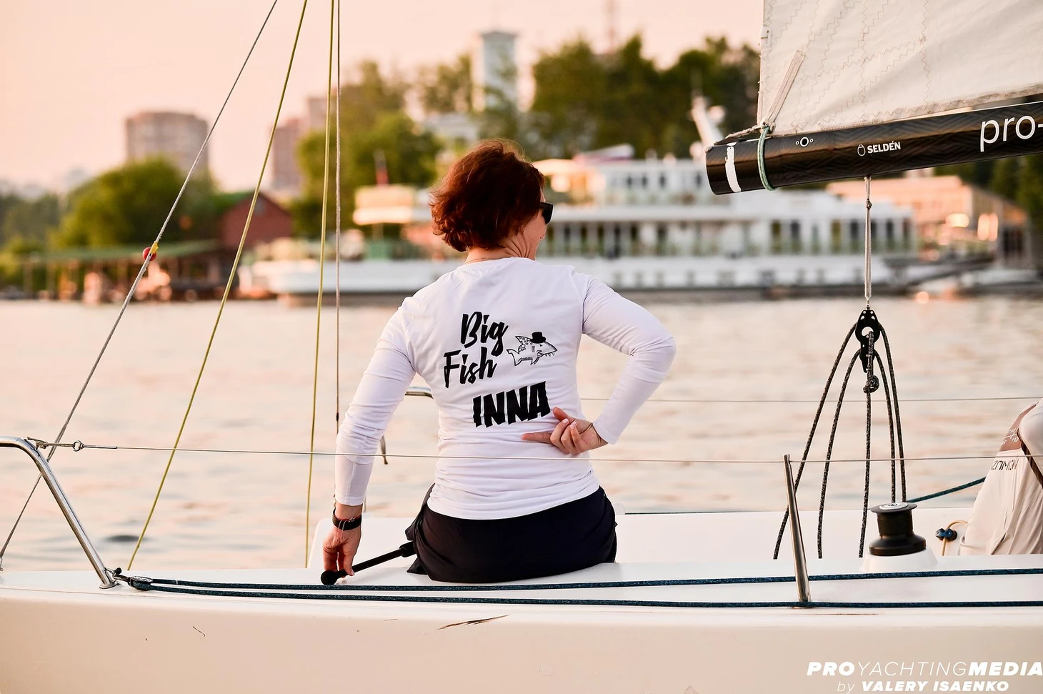 Осенью мы погонялись, в марте я пошла поучила теорию, а в апреле прошла  обучение IYT (международная программа International Yacht Training) и сдала на яхтенные права. Потом я немного ходила на больших лодках в круизы, на любительские регаты в Хорватии, Черногории, Турции. А в 2017, весной, я как раз собиралась на очередную регату в Хорватию, но у меня не получилось уехать по семейным обстоятельствам, и я осталась в Москве. И как раз в мае попала первый раз в PROyachting, тогда еще были лодочки Beneteau Platu 25. Мы познакомились с Олей Селезневой, Ваней Бодягиным, Игорем Пузановым и так друг другу понравились, что договорились погоняться еще, а потом еще. В какой-то момент Миша Кондратьев (прим.ред.: Михаил Кондратьев — генеральный директор PROyachting) сказал: вам уже пора придумывать название команды, хватит быть лодкой 8 или 9. Как-то очень быстро придумали название и наш логотип, рыбу с зубами, которая у нас сейчас на форме. И все, с 2017 года мы — Big Fish.