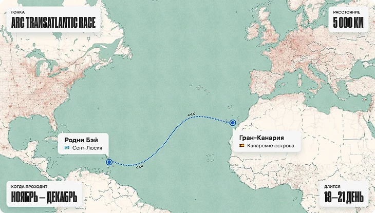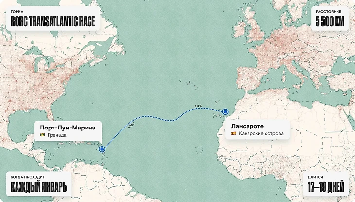 Простой ответ: это возможность прикоснуться к истории. Пересечение Атлантики лежало в основе крупнейших географических открытий XV—XVI вв.еков, а потому любой маршрут позволяет экипажу почувствовать себя на месте великих путешественников. Проведение трансатлантических гонок в межсезонье связано еще и с тем, что океан принято переходить на пассатах (они же trade winds), которые дуют в это время — по английскому названию несложно понять, что эти ветры активно использовали торговцы во время формирования маршрутов. В сезон нижние пассаты между тропиками в Атлантическом океане уносили корабли на запад и лишь к зиме меняли свое направление на восток.