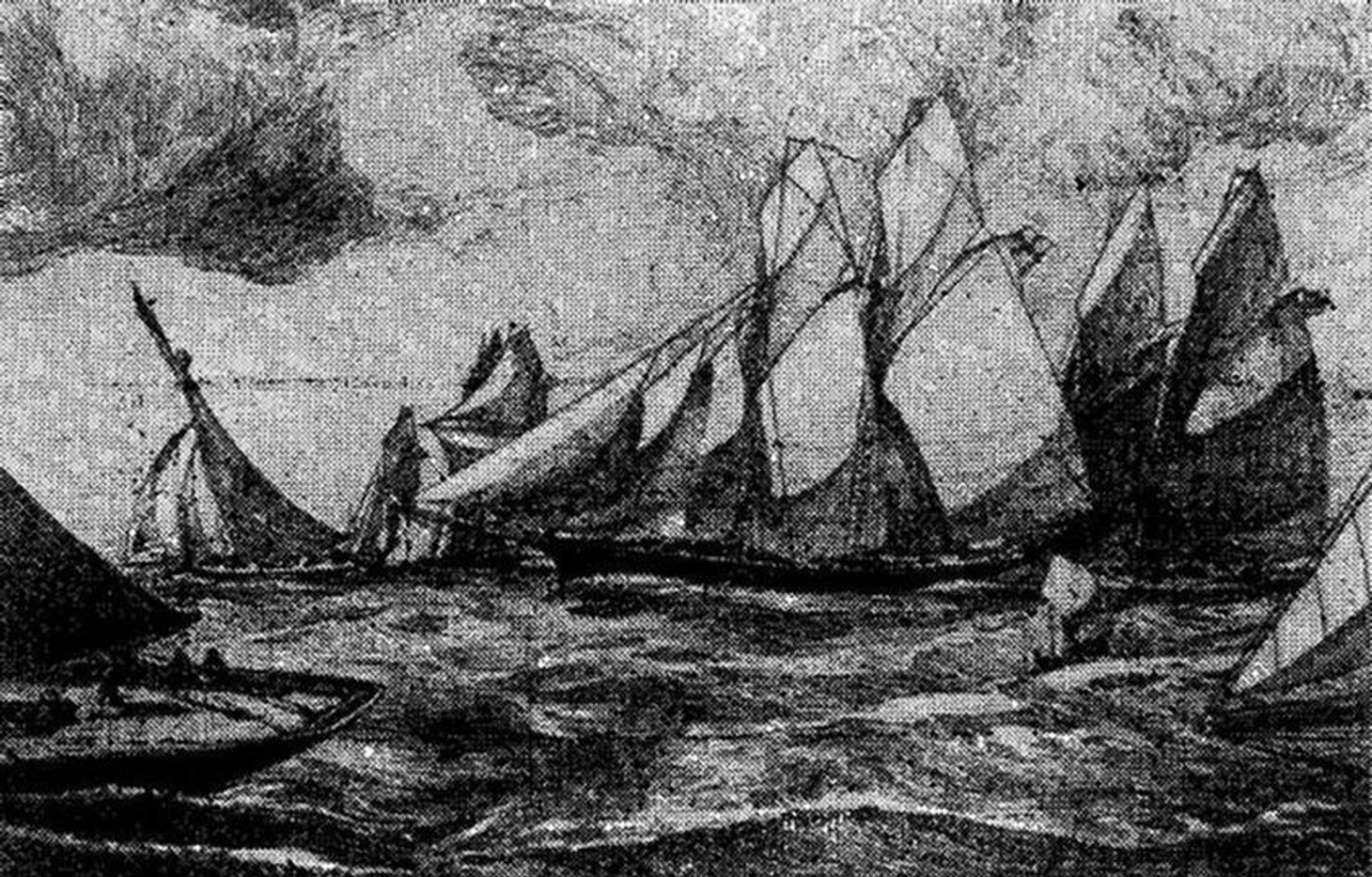 Уже через год, 8 июля 1847 г. по старому стилю (т. е. 20-го по новому) близ Толбухина маяка, установленного у западной оконечности острова Котлин, состоялась первая парусная гонка. Участвовали 7 яхт. Самой большой была двухмачтовая императорская шхуна «Королева Виктория» водоизмещением 257 т, самой маленькой – тендер «Ученик» (51 т). (Для сравнения: самые лёгкие современные гоночные яхты вместе с экипажем весят 100–150 кг.) На всех судах за рулем стояли офицеры военно-морского флота; сами владельцы яхт в соревновании не участвовали.