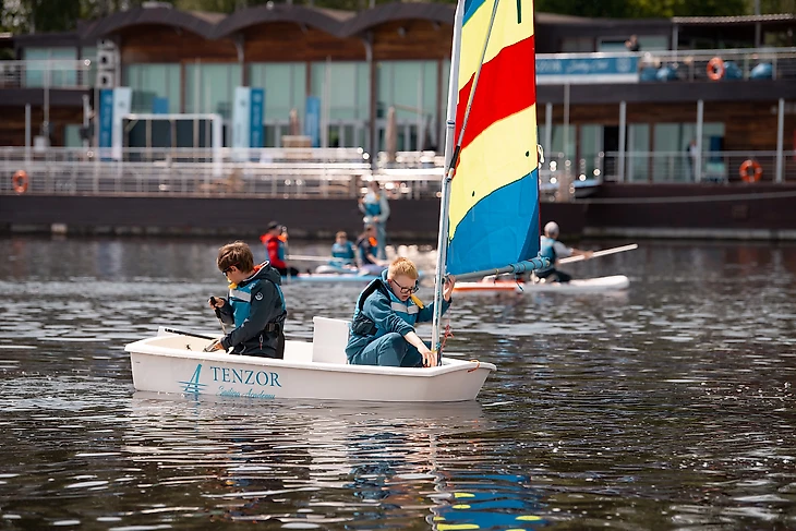 Вместе с профессиональными яхтсменами бросить вызов воде и ветру вышли участники детских парусных соревнований Tenzor Cup Junior. 16 юных участников, разделенных на 4 команды, соревновались на воде, а также в береговых эстафетах. Веселье, задор и командная работа украсили спортивную программу дня.