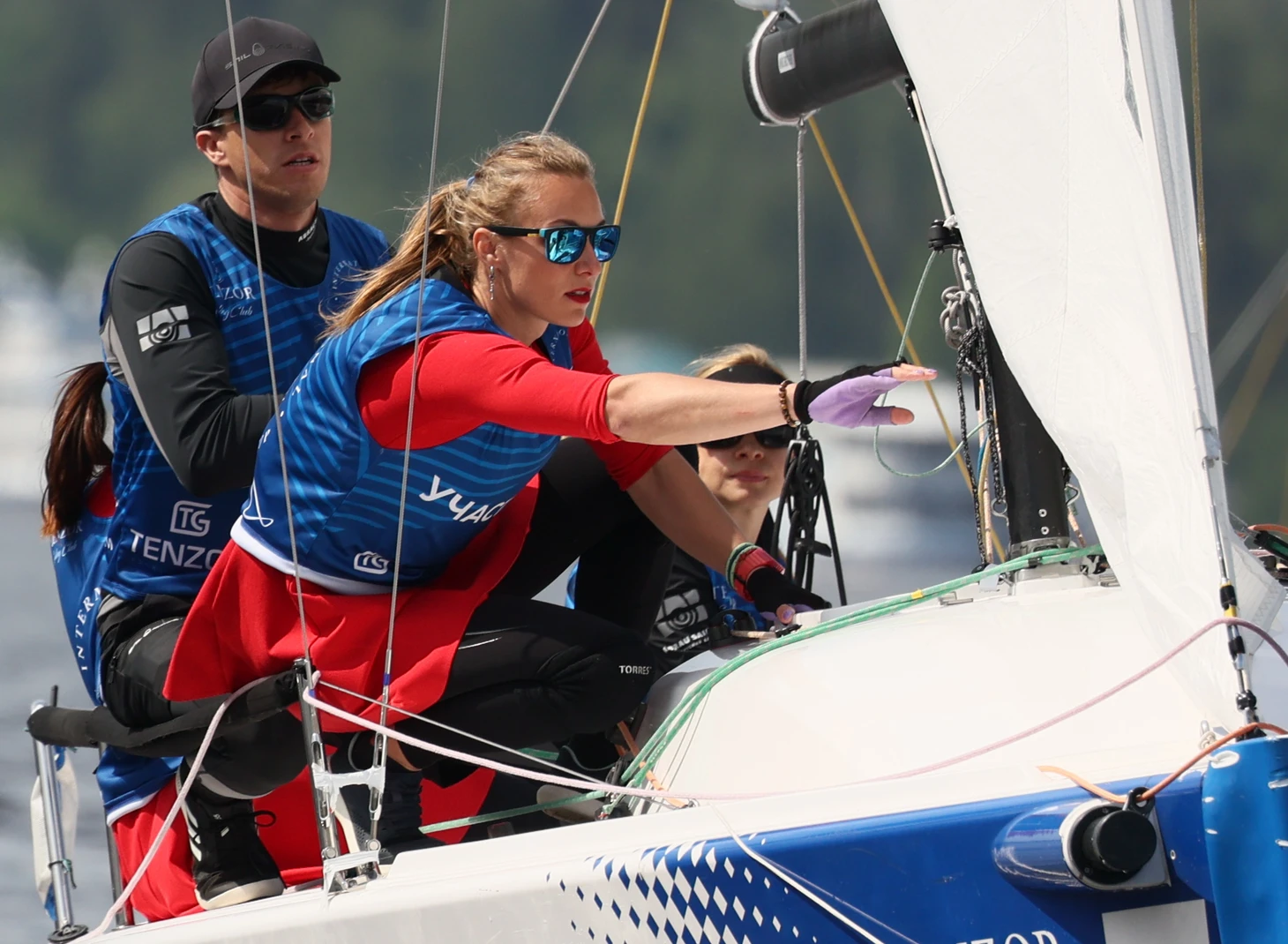 Виктория Моляр, команда «Алые Паруса»: «Мне очень нравится, очень сильные команды и нет однозначных лидеров. Никогда не знаешь, как сложится. Интрига держится, и гонки напоминают игру в шахматы: интересно посмотреть, как разыграется партия. У нас неплохо получилось погонять - с подветренной стороны никого не было, и мы на хорошей скорости взяли старт. Удача была на нашей стороне. Мы наслаждаемся: погода, природа, организация - все хорошо».