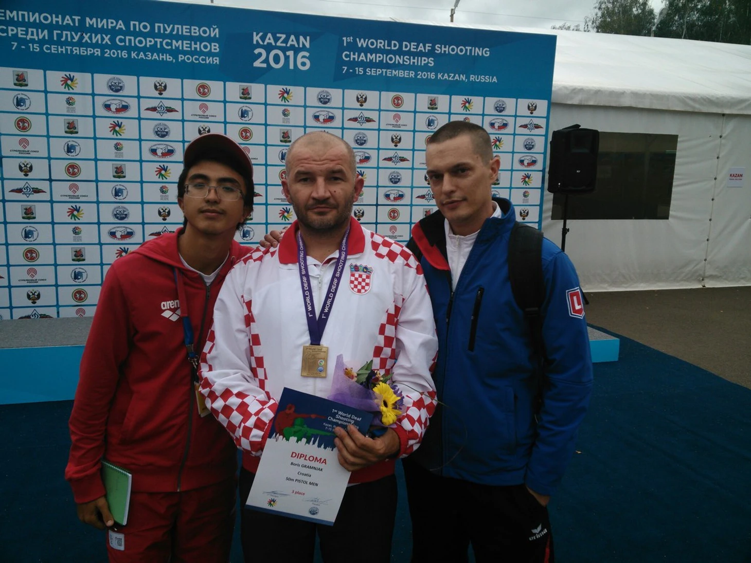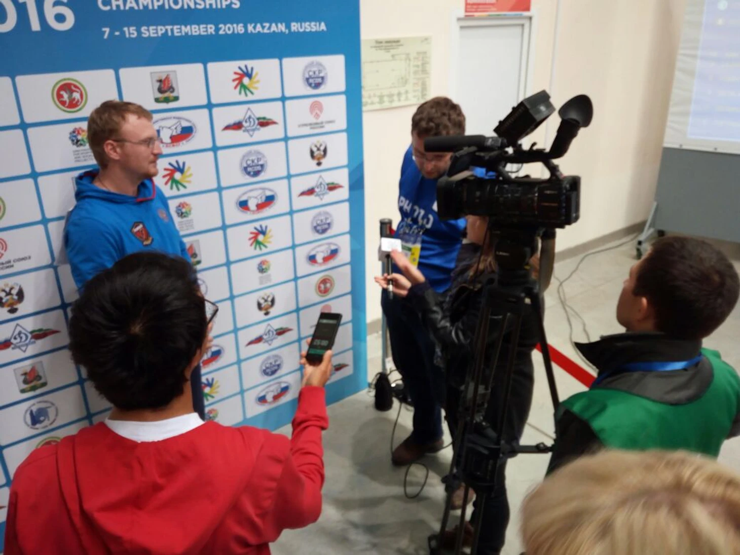 Первое интервью было подобно первой поездке на велосипеде-больно, неприятно, стыдно, но очень нужно и полезно. Любой навык нарабатывается с опытом, а какой можно накопить опыт, бездействуя? Мне немного повезло-после соревнований подъехала съёмочная группа «МАТЧ ТВ», снять блиц-опрос первого чемпиона Казани. Мне оставалось лишь выдать им разрешение, помочь с техникой, найти спортсмена. Творческую часть они брали на себя-я же записал их интервью, они мне разрешили его использовать (хотя я и сильно его подкорректировал). Оставалось дело за малым-опросить других призеров и россиянина, оставшегося на пятой строчке. Я уже посмотрел мастер-класс работы профессионала и пошел работать. Первым проинтервьюируемым мною атлетом стал никто иной как Томас Мошинг-«Фелпс» мира сурдлимпийской стрельбы, человек, выигравший все и вся, переписавший все рекорды. Но здесь он взял лишь серебро, а значит мне предстояло задавать неприятные вопросы.
