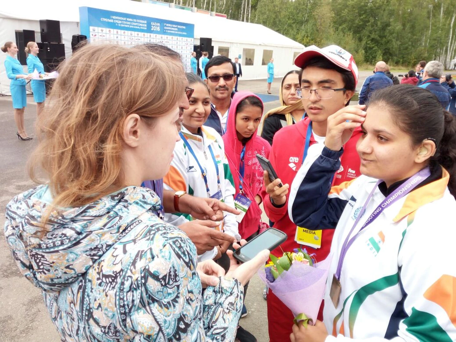 Вдобавок, я оказался предоставлен самому себе. Главред не появлялся на объекте, как и руководитель пресс-службы. Ответственный за пресс-центр также порой надолго отъезжал с места работы-а проходили соревнования на стрелковой базе «Динамо» в поселке Мирный, в 25 км от центра города. Я получил лишь кратчайшие инструкции и должен был идти в бой-добывать первые комментарии о стартующем чемпионате, предстоящих соревнованиях. Охватил мандраж, я не чувствовал себя, не понимал что нужно делать. Ведь нужно найти делегацию, спросить разрешение на опрос, найти спортсмена, найти сурдопереводчика, при чем такого, который сможет правильно все объяснить (как оказалось, язык жестов тоже весьма сильно может разниться в зависимости от региона). Это потом я узнал, что можно все делать гораздо быстрее и проще. А тут я, молодой парень, стою и робею, не знаю что делать, что говорить, как себя вести…