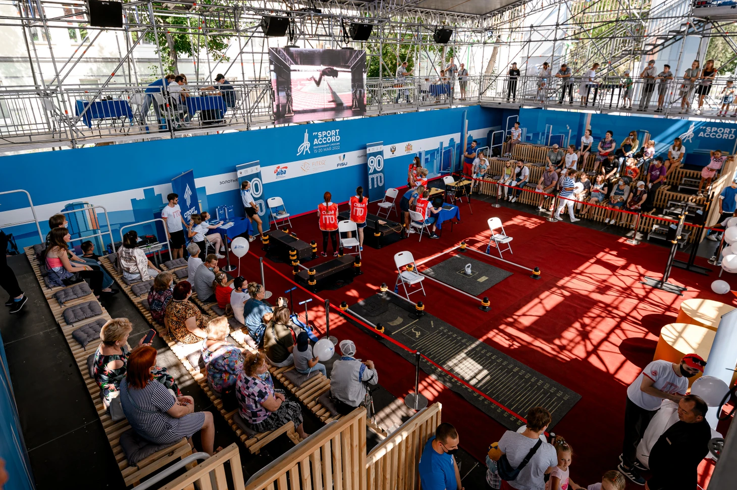 Встреча прошла в презентационном павильоне Всемирного саммита спорта и бизнеса «СпортАккорд» (пройдет в 2022 году). Первыми поздравили Ксению Перову юные уральские спортсмены — они вручили лучнице лавровый венок как символ мира, чести и единства.