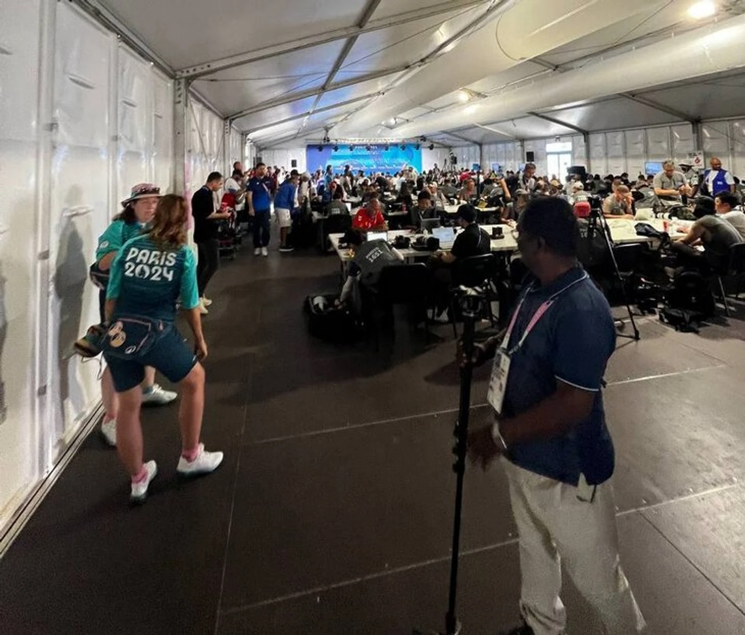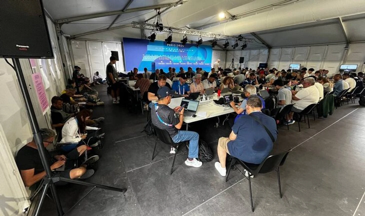 Полные пресс-центры на плавании или легкой атлетике – это норма, но на остальных видах обычно есть где развернуться. Но тут места были заняты даже на полу. Пардон, это же всего лишь квалификация!