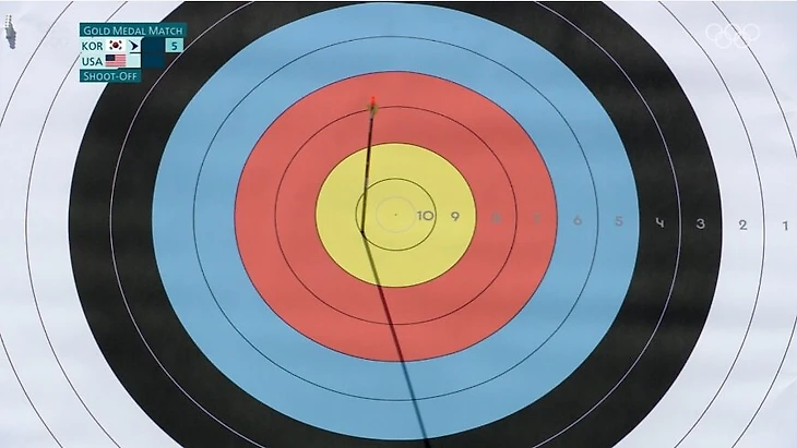 Матч ушел в «перестрелку». Правила такие – всего один выстрел, побеждает тот, чья стрела окажется ближе к центру мишени. Попасть в десятку уже мало, если твой соперник тоже выбьет 10, но его стрела подберется к центру чуть ближе.