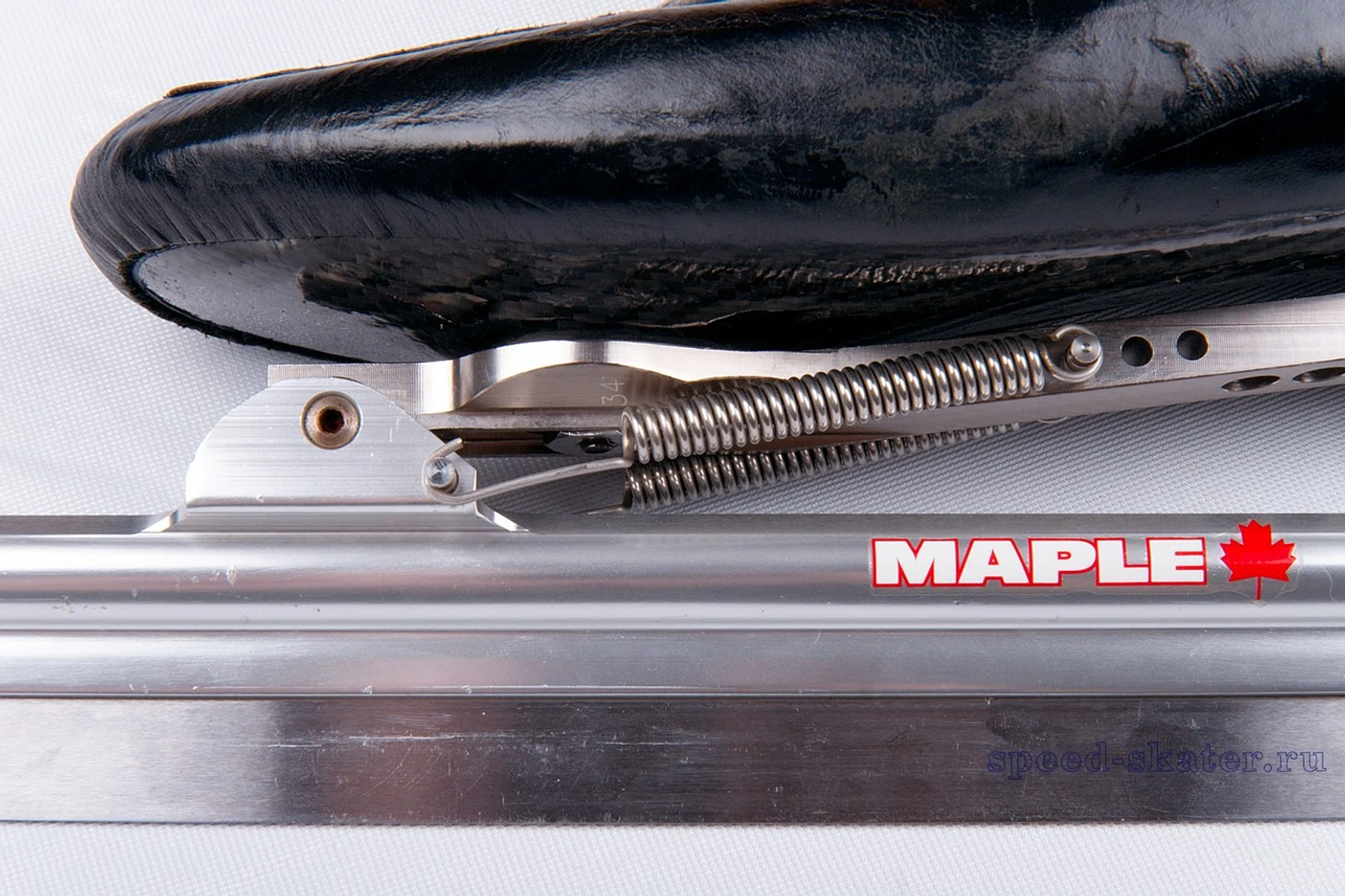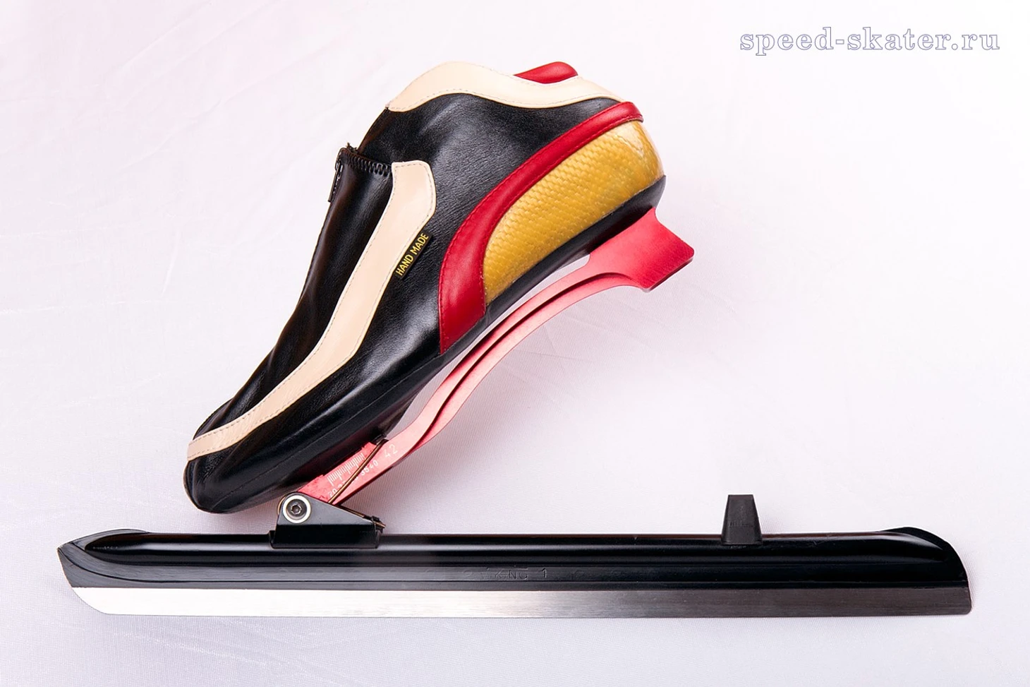 Лезвия крепятся к ботинку всего двумя тонкими болтами. Подвижное лезвие позволяет увеличить длину толчка, то есть повышается кпд фищических усилий спортсмена при отталкивании.
