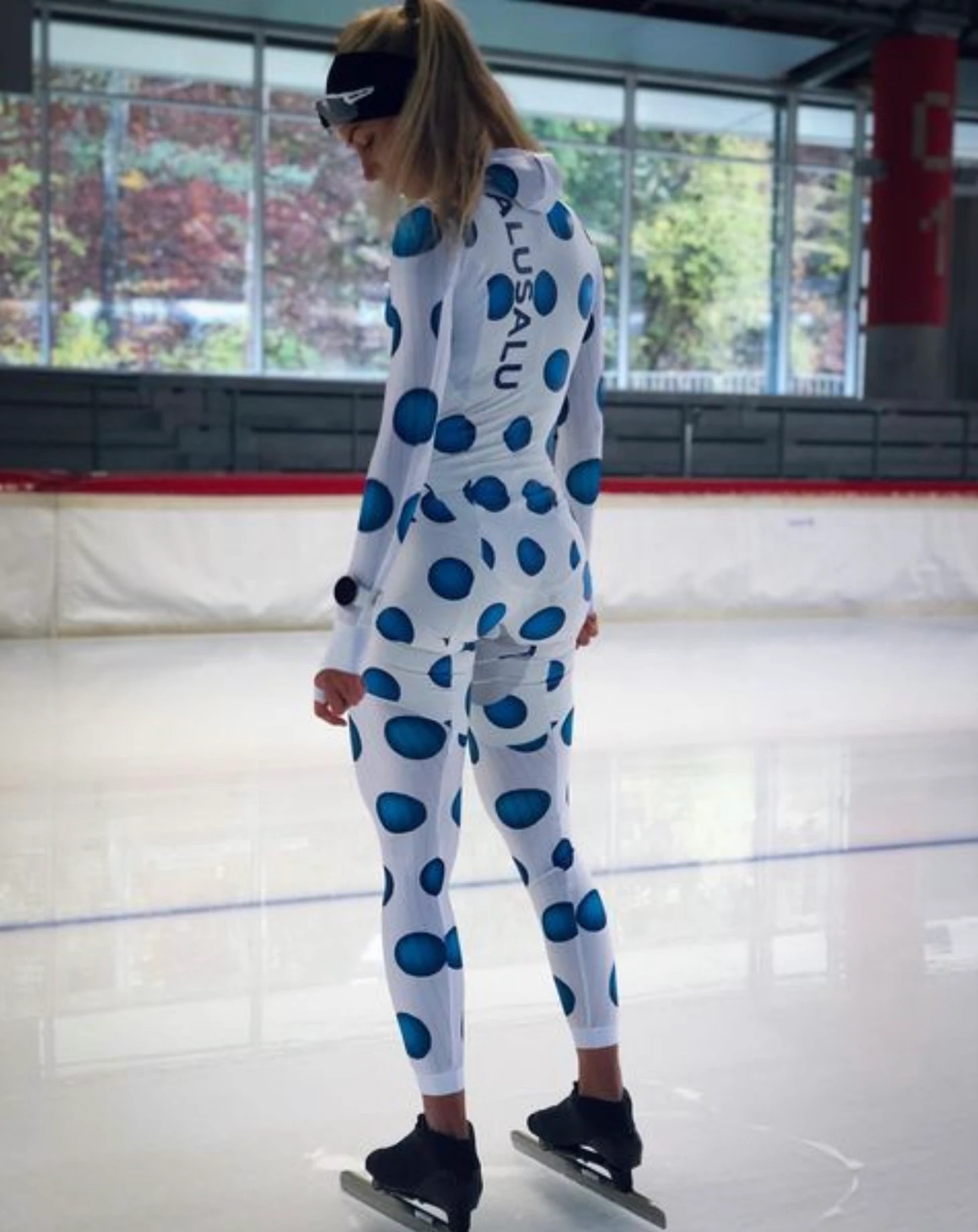 Саския Алусалу — эстонская конькобежка, многократная чемпионка Эстонии. Специализируется на длинных дистанциях. Девушка, которой выпала честь нести национальный флаг на церемонии открытия Олимпиады-2018, заняла четвертое место в масс-старте. Это лучший результат для эстонских олимпийцев в Пхёнчхане.