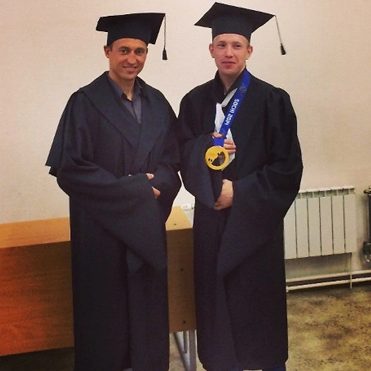 Олимпийский чемпион-2014 по биатлону Алексей Волков защищал магистерскую диссертацию по теме «Развитие массового студенческого спорта в вузе как условие приобщения молодежи к ценностям здорового образа жизни», научным руководителем выступила кандидат педагогических наук Наталья Пешкова.