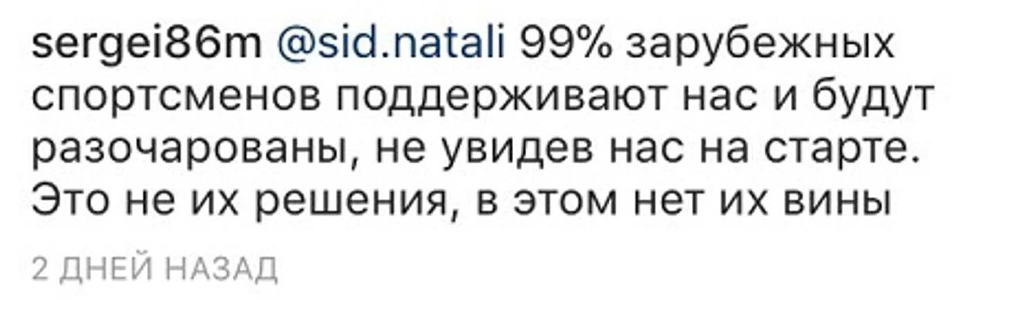 «99 процентов зарубежных спортсменов поддерживают нас и будут разочарованы, не увидев нас на старте.