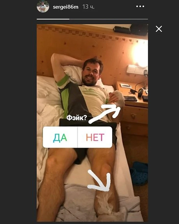 В инстаграме россиянин опубликовал фотографию с забинтованной рукой и подписал ее «Фэйк?»