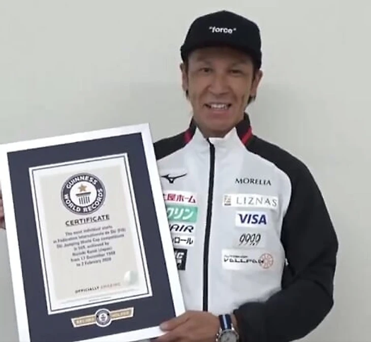 Трехкратный призер Олимпийских игр Нориаки Касаи получил сертификат за мировой рекорд Гиннесса как спортсмен с наибольшим количеством стартов на Кубке мира по прыжкам с трамплина.