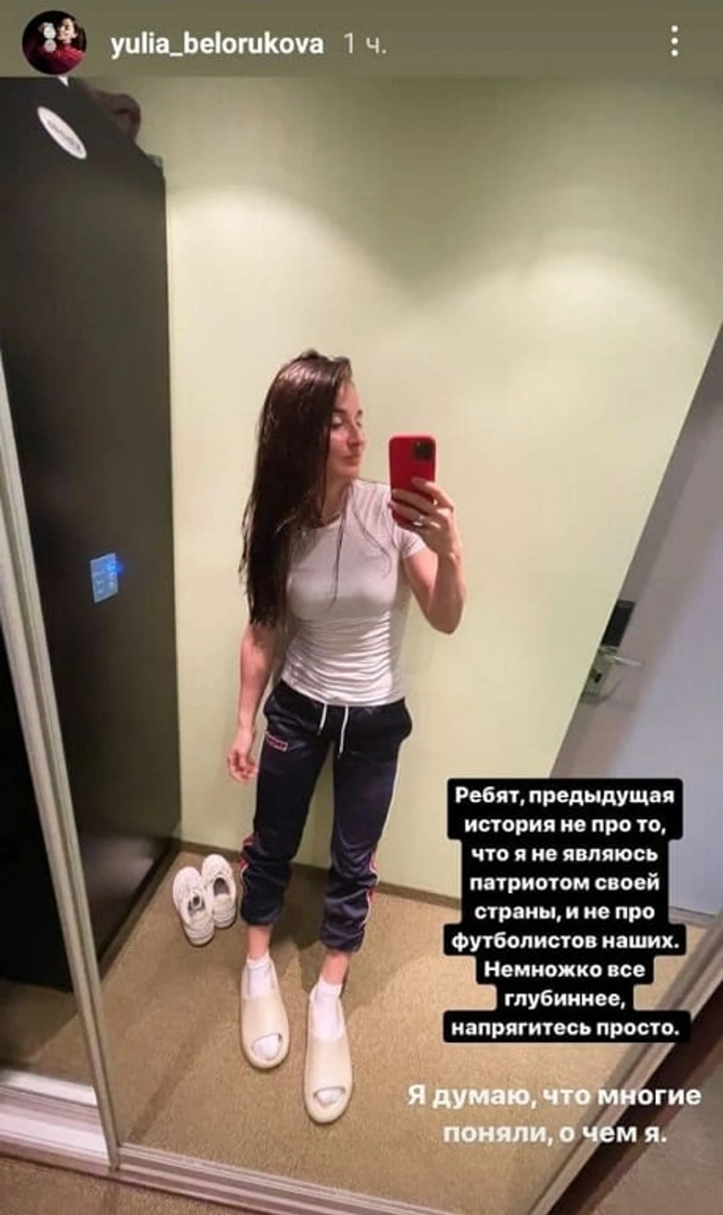 Эта история не про то, что я не являюсь патриотом своей страны. И не про футболистов наших. Немножко все глубиннее, напрягитесь просто. Я думаю, что многие поняли, о чем я», – написала Ступак.