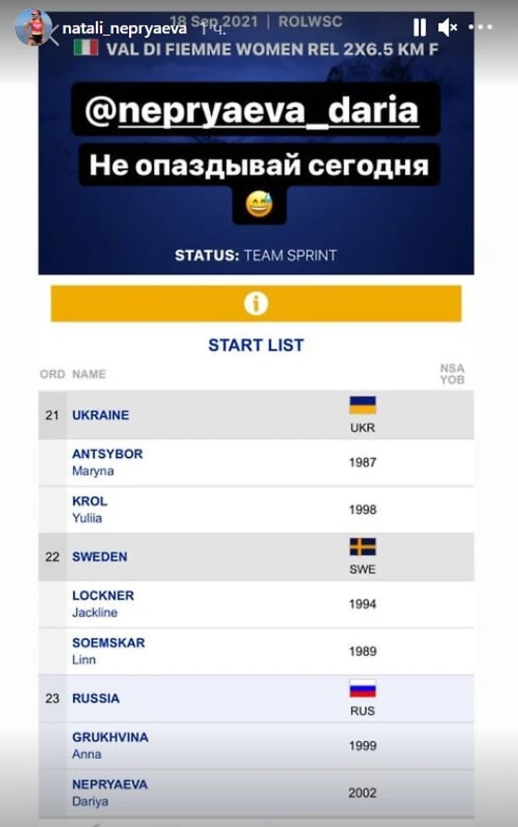 Наталья Непряева об ошибке организаторов ЧМ по лыжероллерам, которые вместо нее поставили в старт-лист сестру: «Дарья, не опаздывай сегодня»