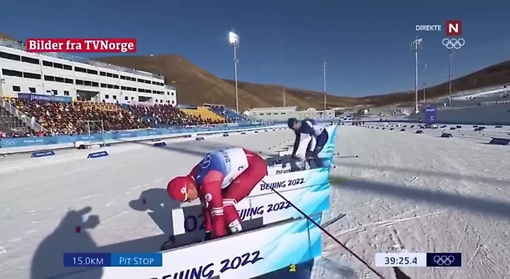 «Это произошло случайно, без умысла». Большунов положил палку в бокс Клэбо при переобувании в скиатлоне на Олимпиаде-2022