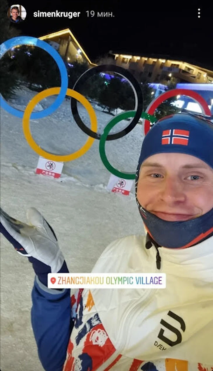 На предолимпийском сборе в Италии Крюгер заразился коронавирусом, поэтому не смог прилететь в Китай вместе с остальной норвежской командой.