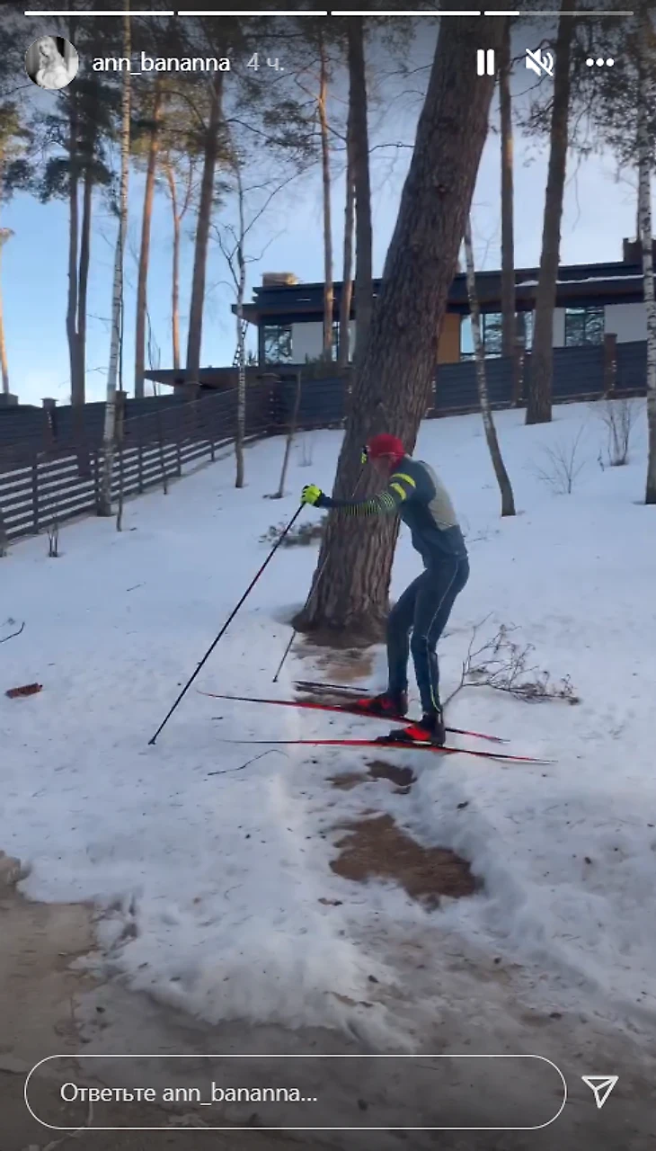 «Человек приехал домой», – написала Большунова в сторис инстаграма, опубликовав видео, на котором спортсмен бегает по двору дома на лыжах.