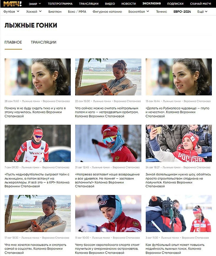 ПРИМЕЧАНИЕ: раздел «Лыжи» на «Матч ТВ» сейчас выглядит так – только материалы от Степановой.