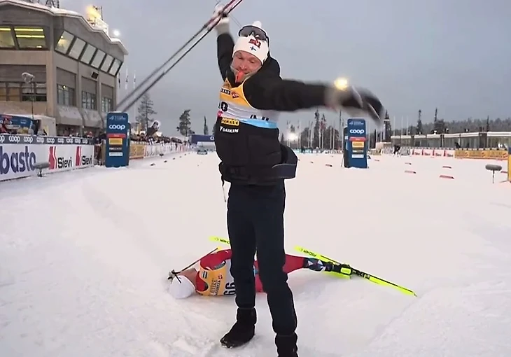 Нисканен бросил палки на снег, когда Ниенге выиграл у него 3 секунды в гонке на Кубке мира в Руке